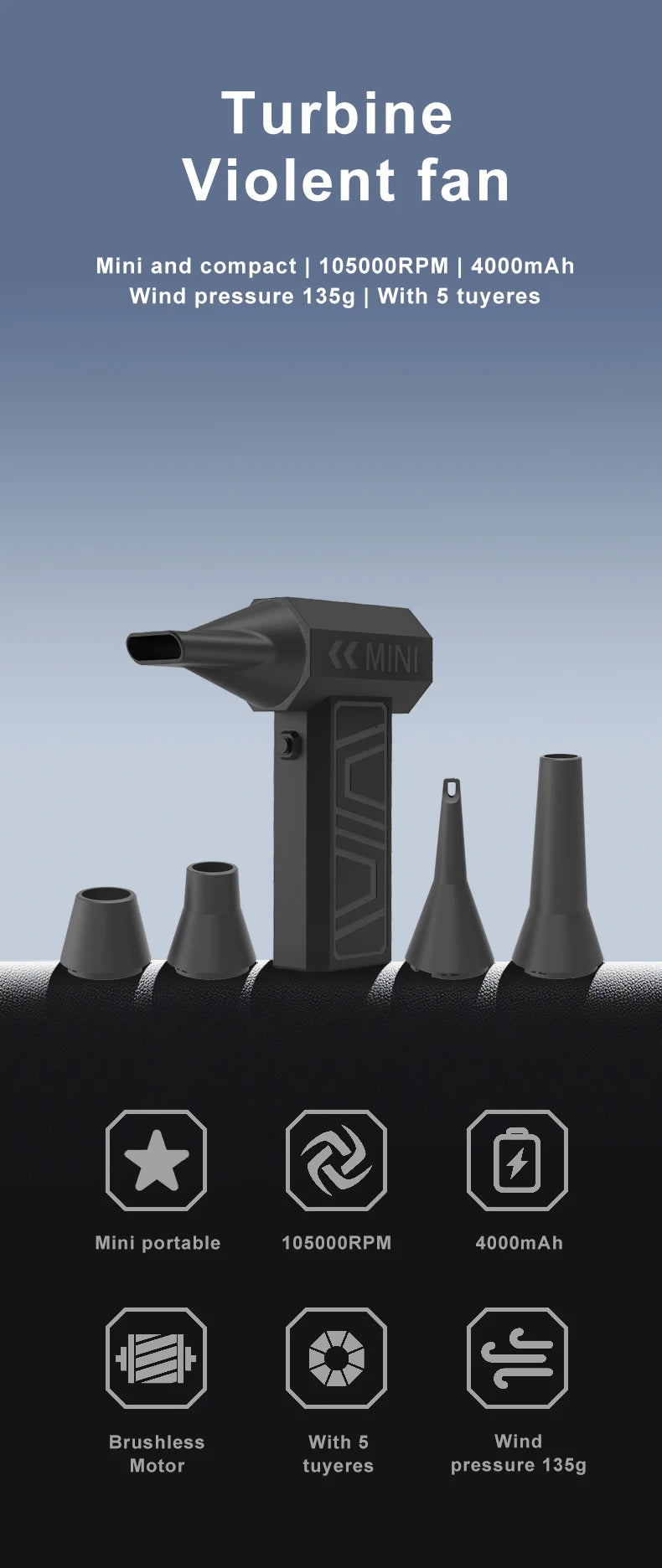 New 200000RPM Violent Fan Powerful Air Blower Vacuum Dust Cleaner Type C Super Powe Wind 52m/s Brushless Turbo Jet Blower