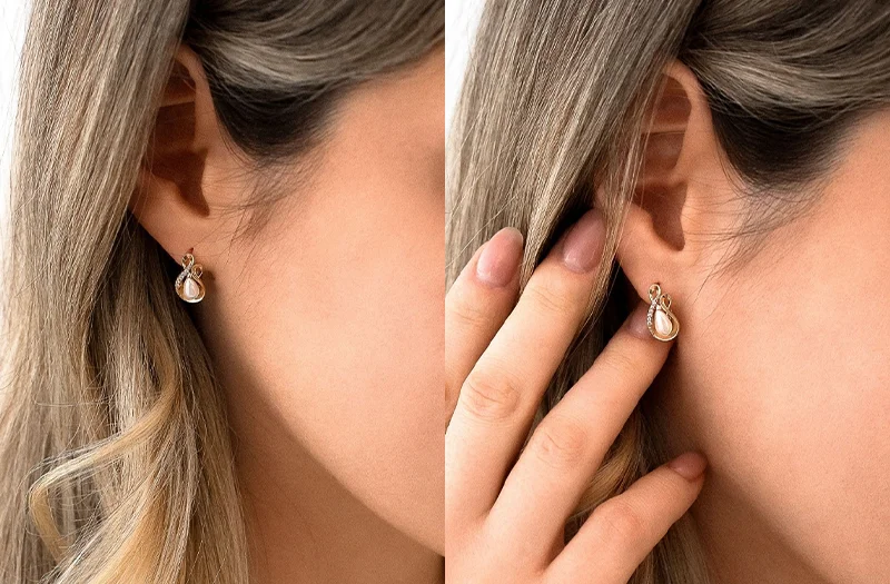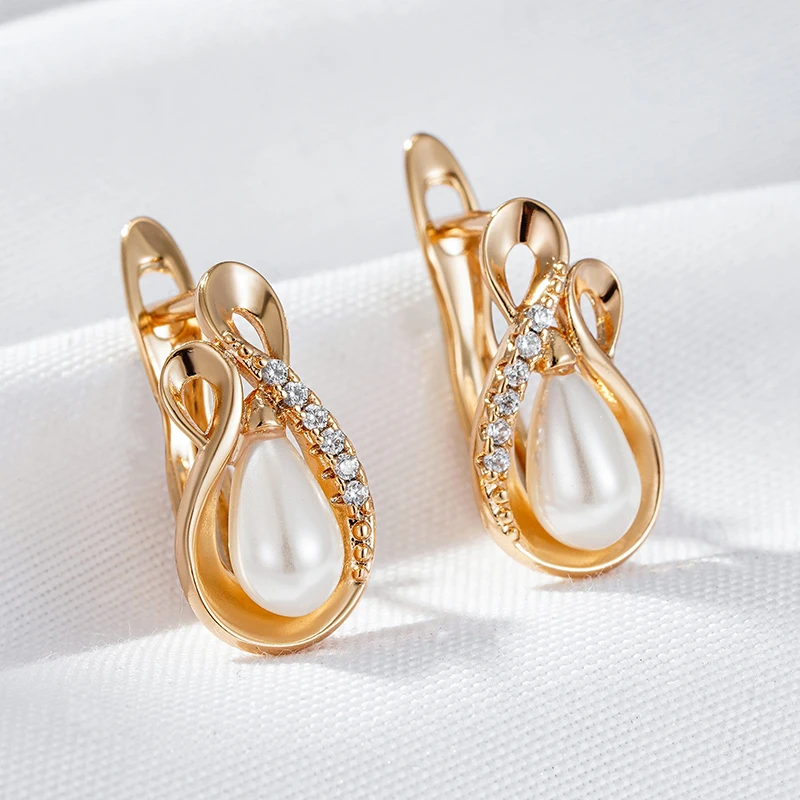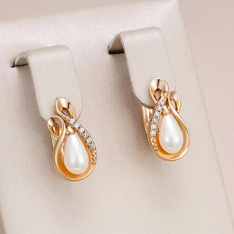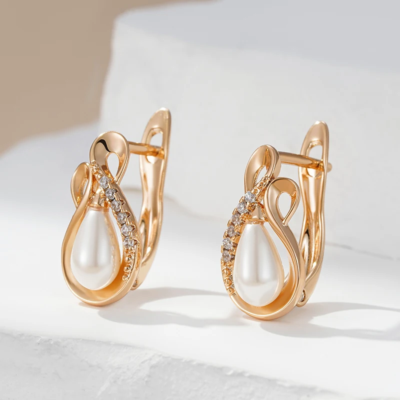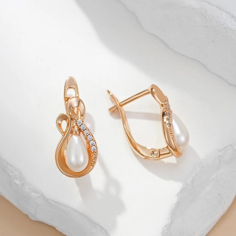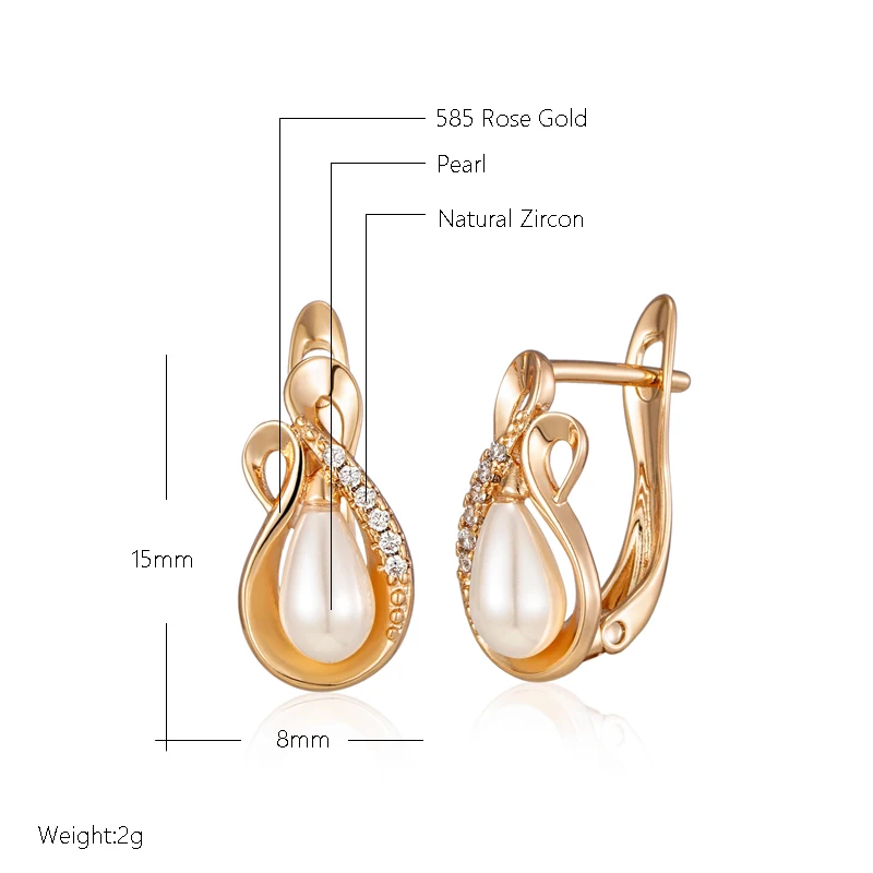 585 Rose Gold Color Drop Shape Pearl Zircon Hoop Earrings For Women Simple Fashion Design Daily Matching Fine Jewelry