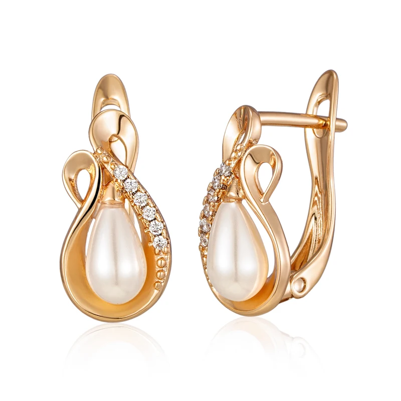 585 Rose Gold Color Drop Shape Pearl Zircon Hoop Earrings